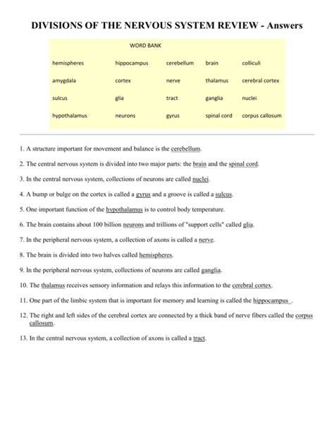 Read Divisions Of The Nervous System Review Answers PDF